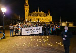 Haaqada Beynəlxalq Ədalət Məhkəməsi önündə aksiya keçirilib